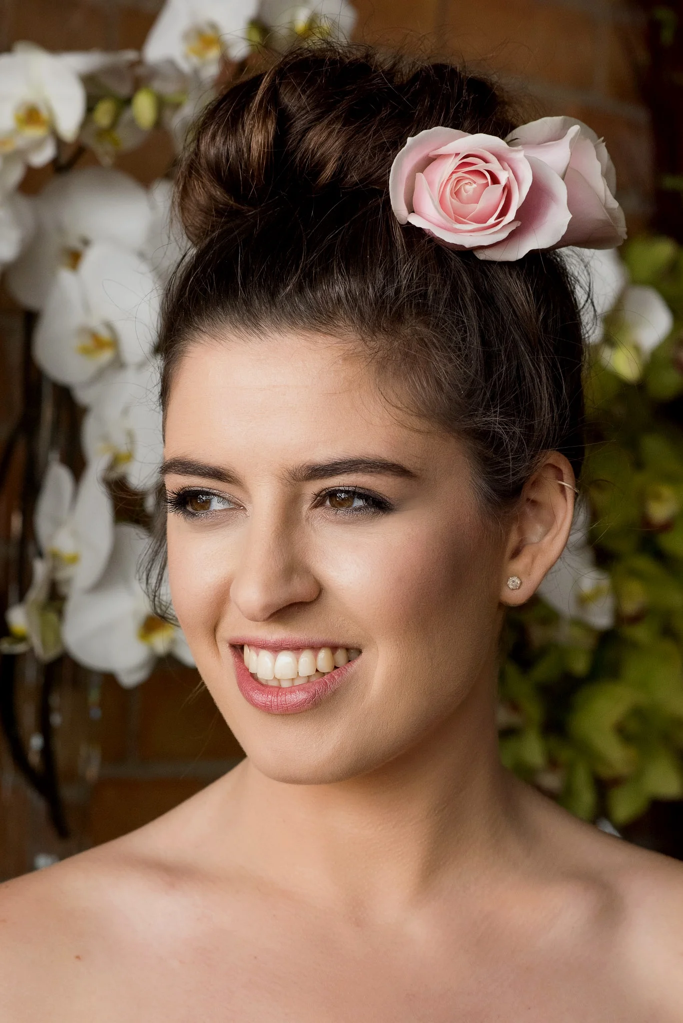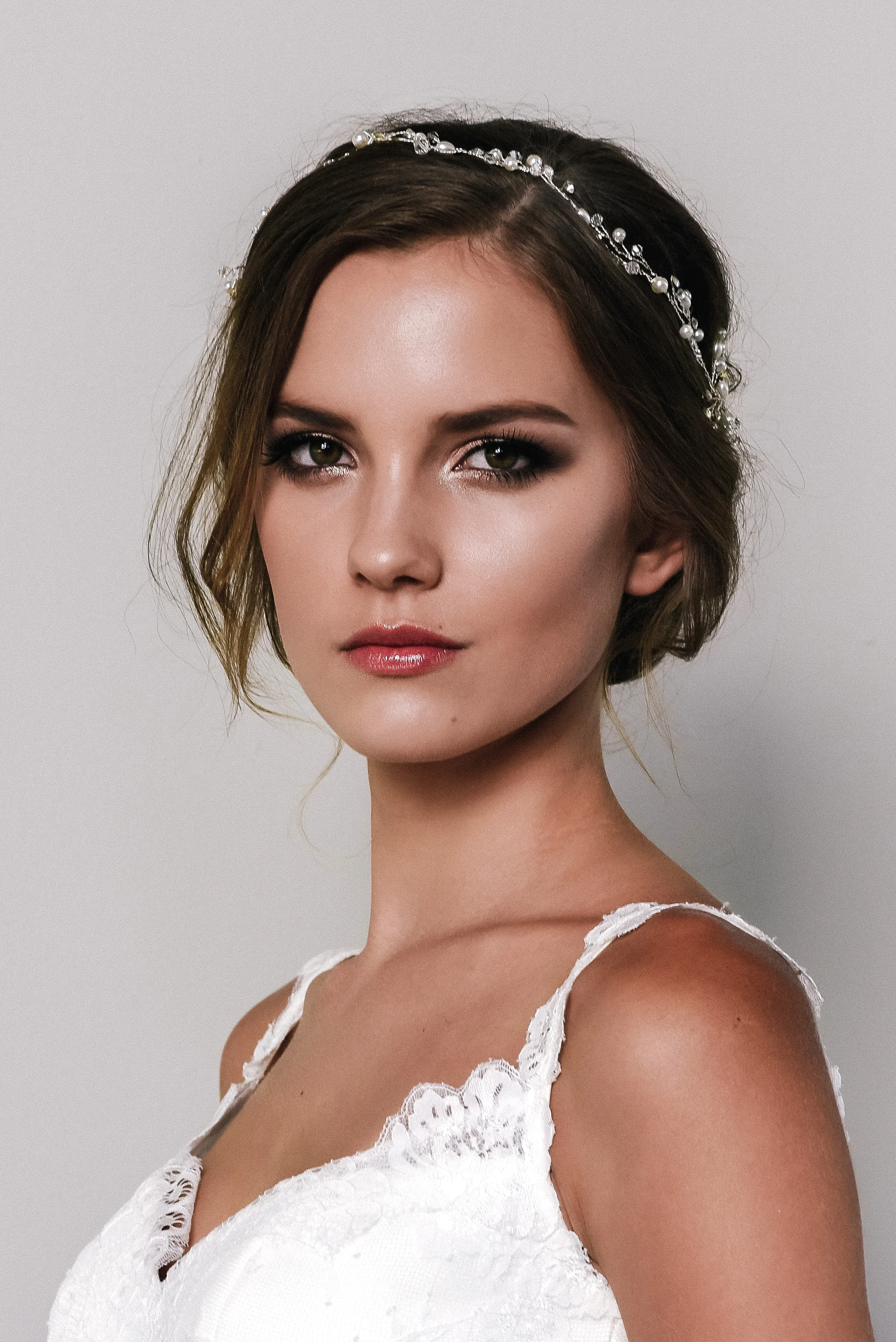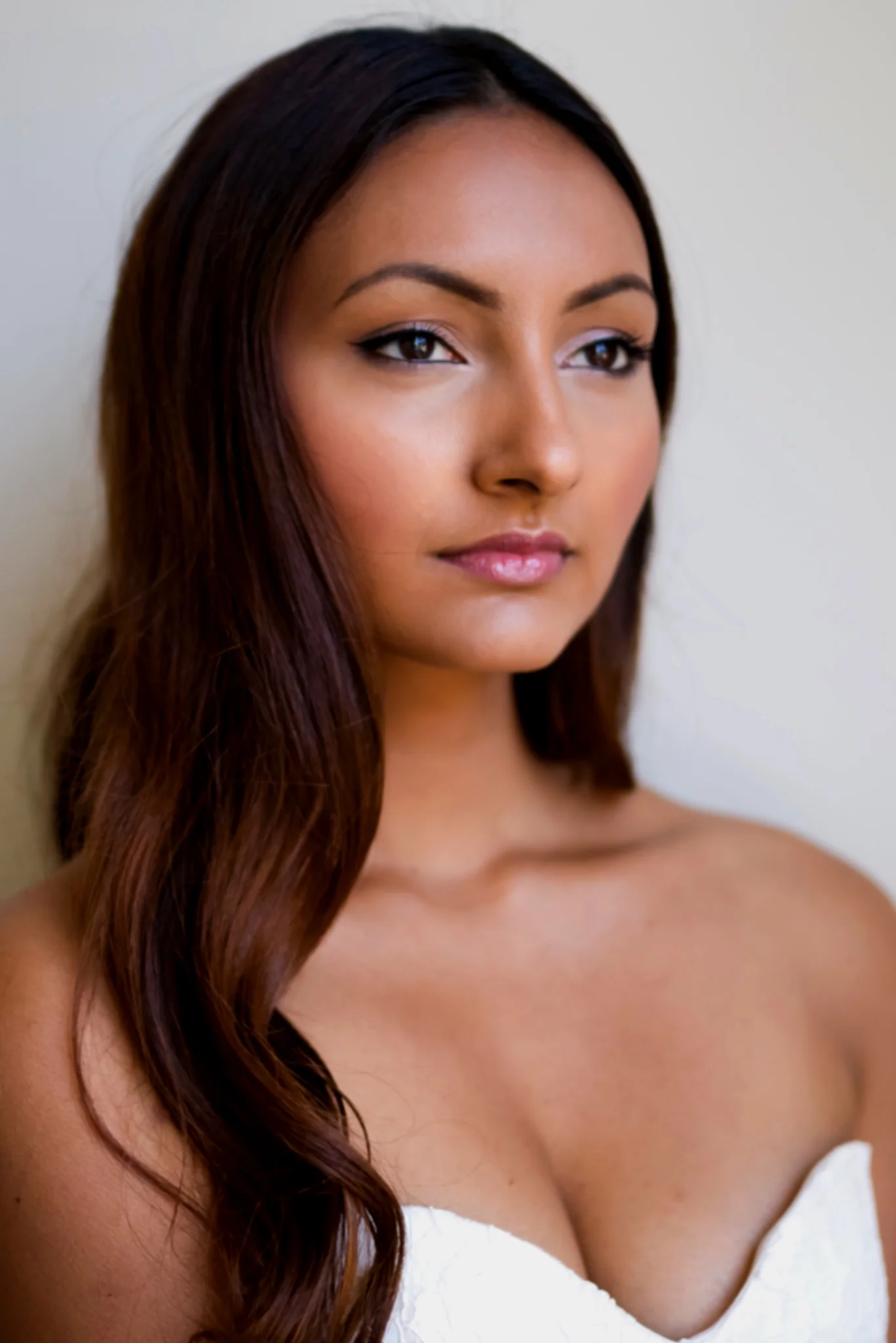 young, good looking, Christian Bride and groom close up shot kissing with beautiful hair and makeup outdoors