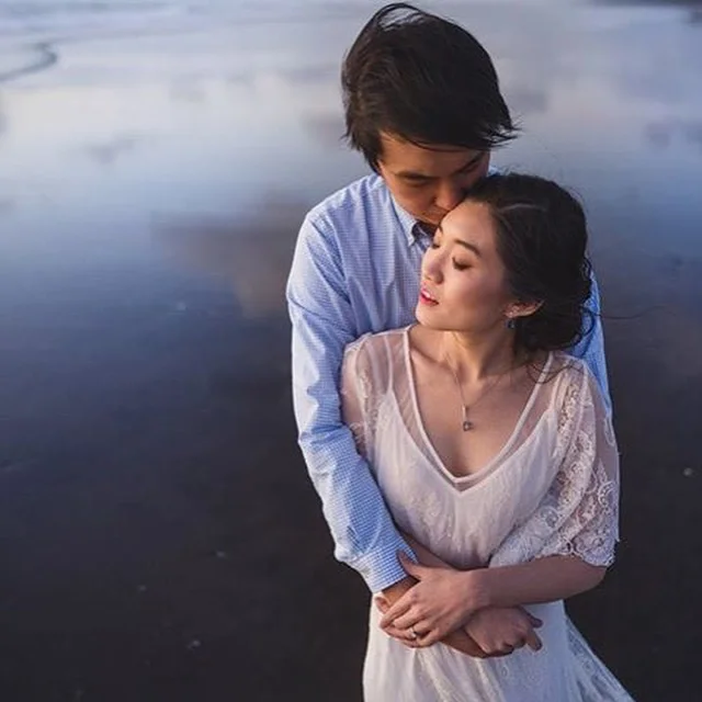Bride and groom at a Beautiful Waterfall in the Native New Zealand Bush Near Piha